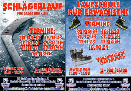 Einmal im Monat haben Eishockeyspieler und solche, die es noch werden wollen, bei uns im Icehouse die Möglichkeit, mit Schläger und Puck aufs Eis zu gehen. Helm und Handschuhe sind Pflicht, weitere Ausrüstung ist nicht erlaubt. Kosten: Nur 9 Euro pro Person und Termin; Leihschlittschuhe kosten 4,50 Euro zusätzlich. Der Schlägerlauf findet an den u.g. Samstagen jeweils von 12.15 bis 13:30 Uhr statt: